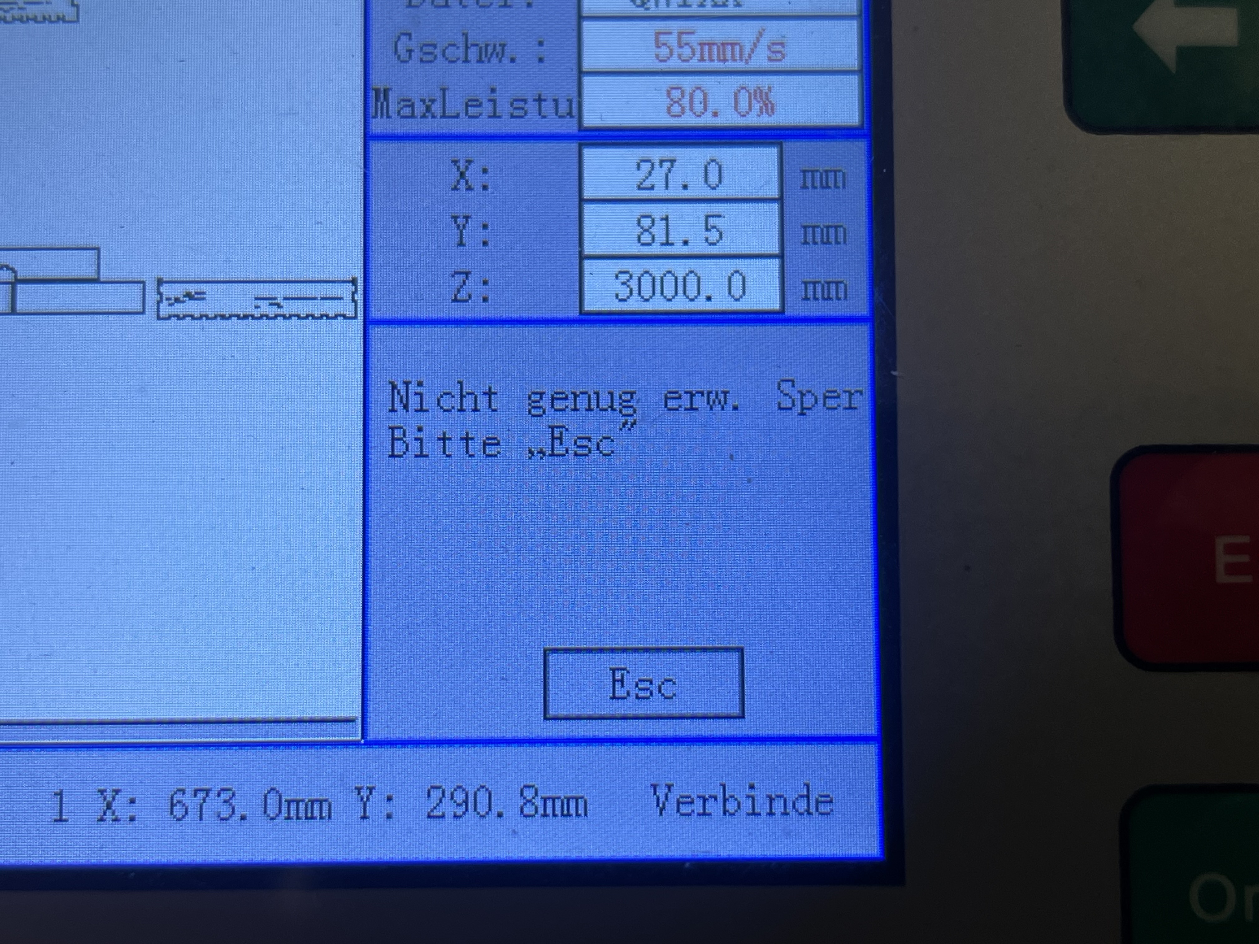 Machine error (German): Nicht genug erw. Sper Bitte "Esc"