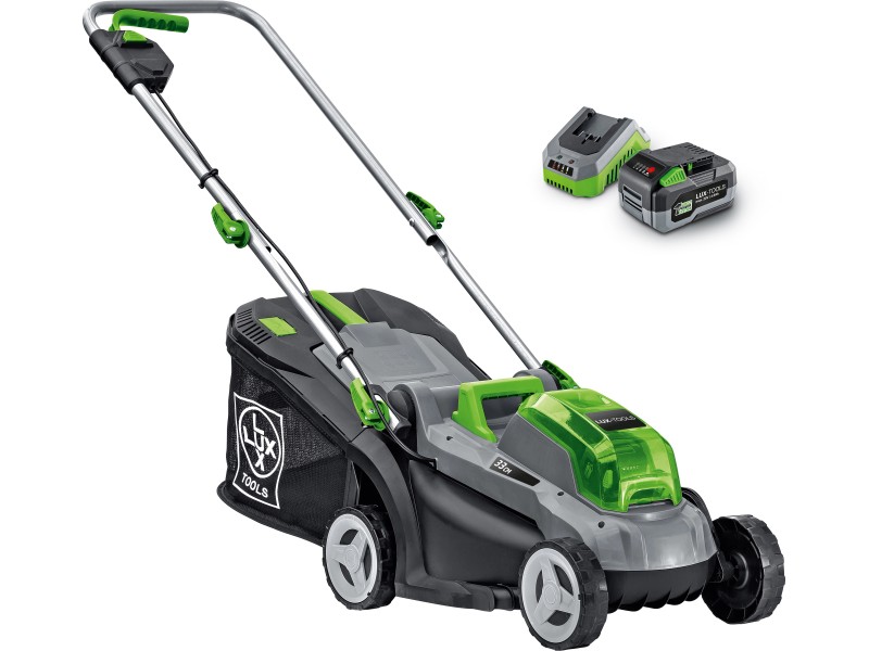 This is the name and brand of the Lawn mower: LUX 20V Akku-Rasenmäher