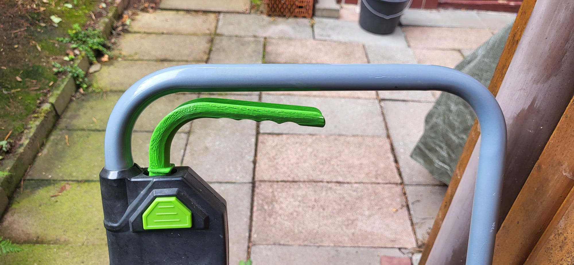 Our neighbour Dr.-Ing. Christoph Baumer gave us a broken handle for lawn mower with the request to fix it. We made a 3D-scan of it and printed a copy: